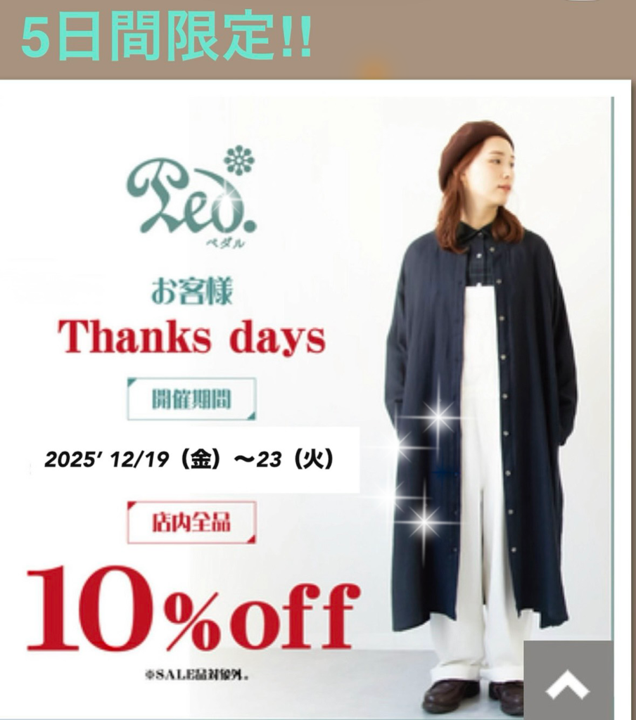 当店では12月19日〜12月 23日の5日間限定で『お客様 thanks week』